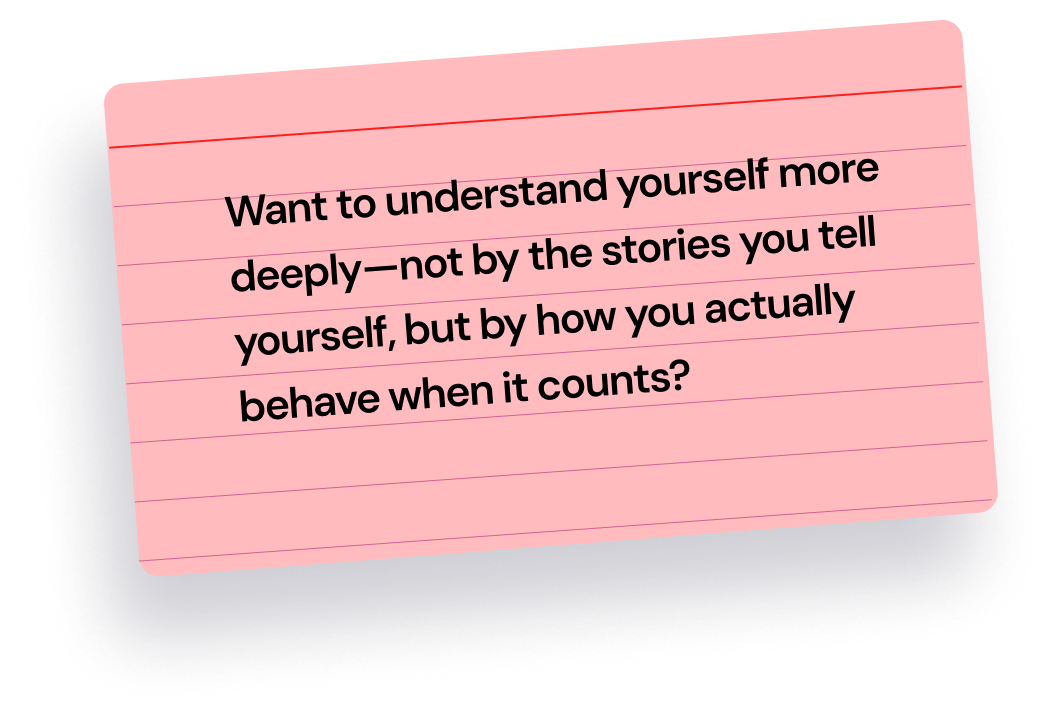 But the systems we use to understand ourselves don't capture that complexity. They're based on what you say — not what you actually do.